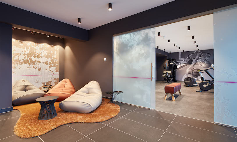 Ein Ort mit besonderem Flair: Zwischen historischen Industriegebäuden, ehemaligen Fabriken und eleganter moderner Architektur steht das Hotel im LESKANPark in Köln. Im Obergeschoss, mit herrlichen Sichtbeziehungen in den Park, liegt der kleine und hochwertige Sauna- und Fitnessbereich des Hotels. Der einzigartige und unverwechselbare Charakter des Low-Cost-Hotels ist auch in diesen Bereichen überall erkennbar.