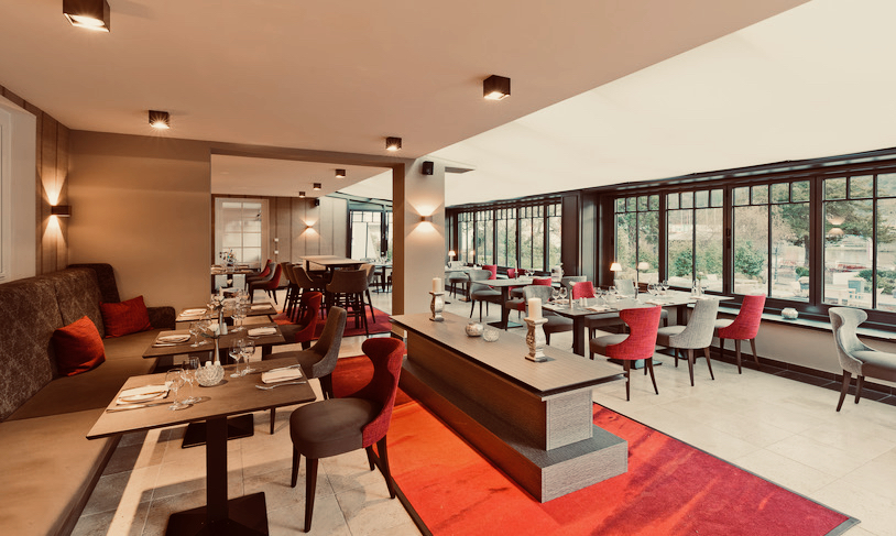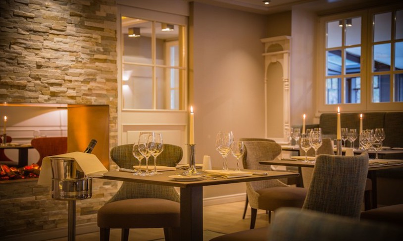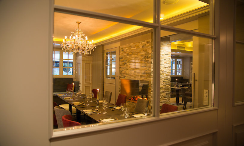 Das Restaurant „Zum Schlösschen“ mit angeschlossener Orangerie und Natursteinterrasse verfügt über 100 Sitzplätze. Dem Gast werden unterschiedlichste Möglichkeiten des Verweilens angeboten – ob zurückgezogen in Nischen sitzend oder präsent im Zentrum des Restaurants, jeder kann für jeden Anlass seinen Platz im „Schlösschen“ finden.