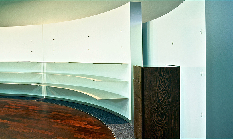 With its cosmetic products and special laser appliances, the Dany Care company represents the “origin of beauty”. Thus the new sales and display area should incorporate the aesthetic demand of the company and strengthen the trust of the customers in their products. The designed center is a “fountain of youth”. Functional areas are placed around it, for example, the wall modules for the product presentation. The guests walk through the rooms to the treatment rooms and experience trust in the products as well as the treatment.