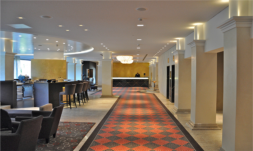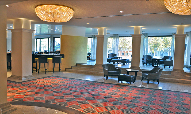 The rooms should seem bright, imperial and timid to the guests and thus reflect the history of the house even in today´s times. Within the reduced colors one shade dominates significantly – the coral red individually woven carpet that forms a pleasant contrast to the many soft colors in fabrics, walls and interior design.