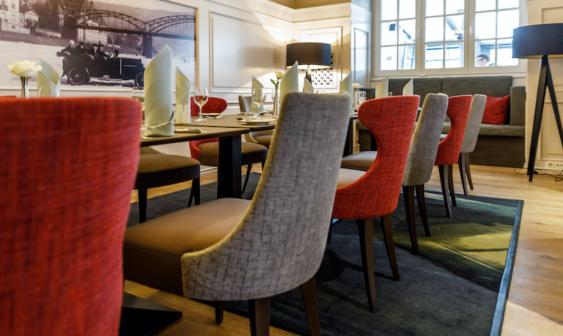 Built in 1901 by a reputable wine-trade family, the building was used as a representative winery and residential house over seven decades. The restaurant “Zum Schlösschen” with an attached orangery and a natural-stone road holds 100 seats. The guests have various options during their stay – be it withdrawn in niches or present in the center of the restaurant, everyone will find their place for any kind of occasion in this small castle.