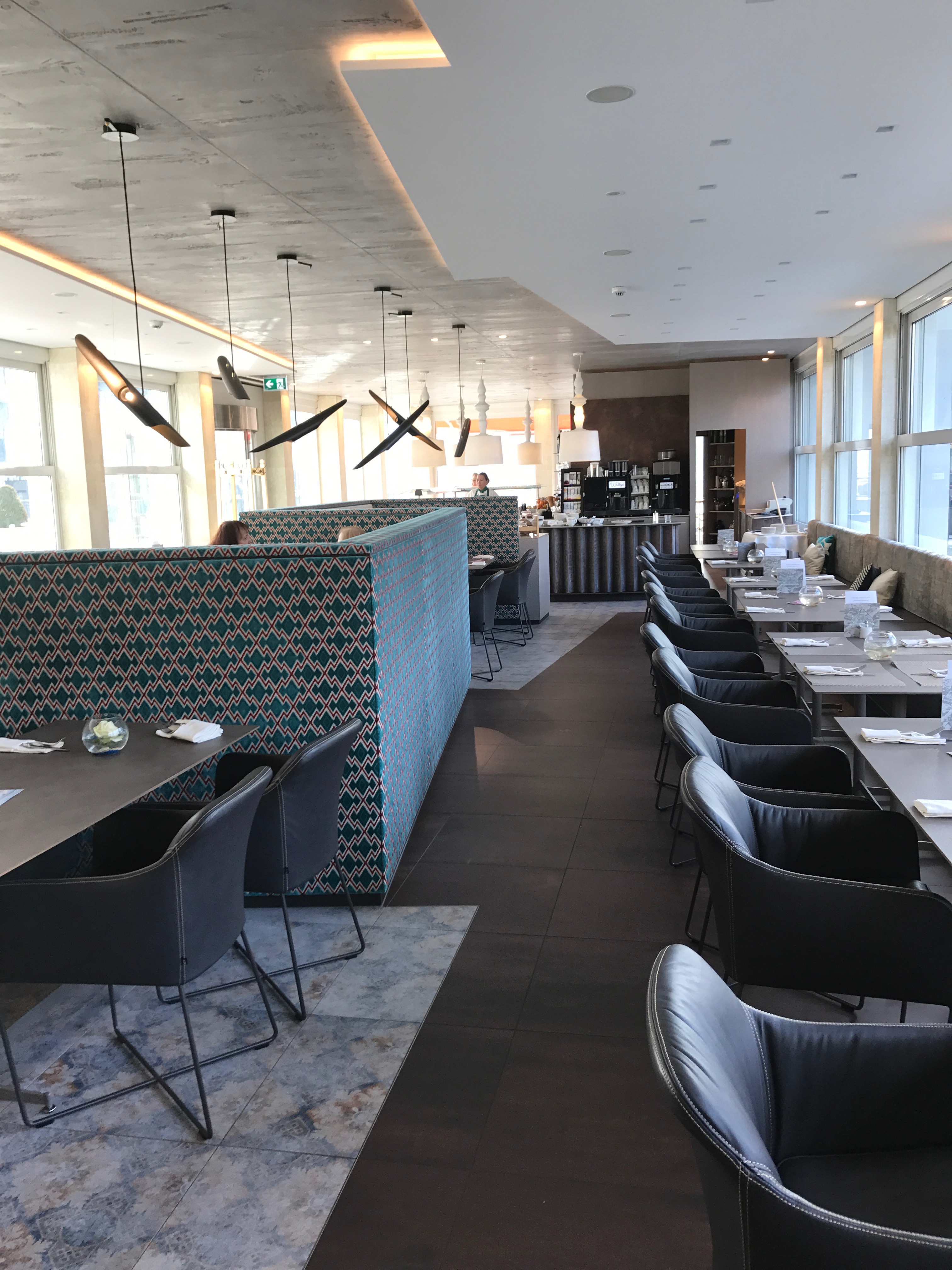 „It’s supposed to be neither bistro, bar, café or restaurant – it’s simply Willy’s.” With casual elegance as well as progressive and individual materials the room is divided into three parts: on the one side a long bench seat, tables and comfortable armchairs, on the other side tables and chairs. In between sitting niches with high backrests skillfully act as partitions and subtly separate small groups.